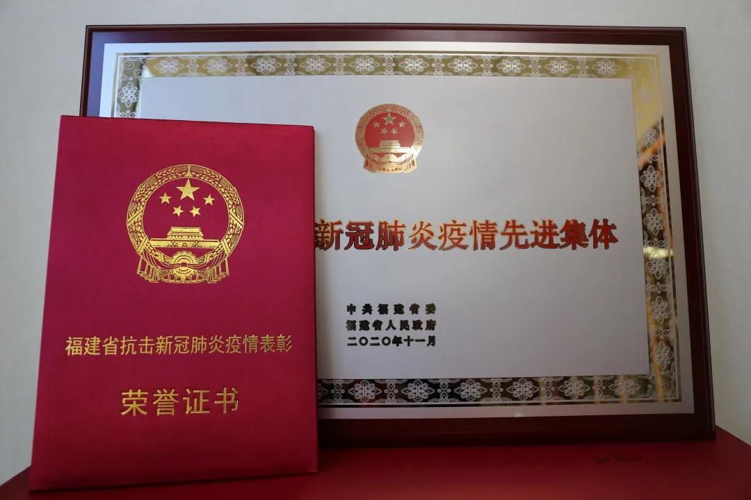2020年11月26日亚洲必赢集团获福建省抗击新冠肺炎疫情先进整体声誉