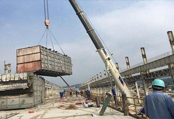 2017年9月18日福建亚洲必赢上克不锈钢有限公司冷酸炉壳吊装就位,,,,,标记着冷酸线装置施工最先。。。